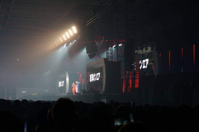 今回の座席はステージの真横と非常に良くない場所でした。ステージが始まればわかることですが、正面から見ることを前提としているので、横からだとかなり厳しいものがあります。それでも、前方の座席なので、あるメリットが有りました。