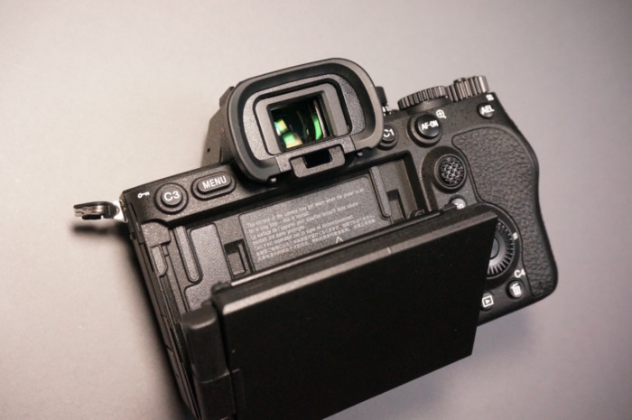 従来の機種はバリアングルモニターが採用されてきましたが、a7Ⅴでは『マルチアングルモニター』が採用されています。画面が手前に起き上がってくる『チルトモニター』、カメラ本体の横にパカッと開く『バリアングルモニター』の両方の機構が搭載されています。