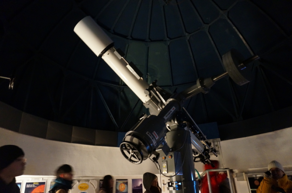 観測に使うのはこの20cm口径のF12屈折望遠鏡です。雪印乳業(現 雪印メグミルク)から寄贈されたものだそうです。大きな望遠鏡なので季節によって様々な星を見ることができます。今回は冬の明るい星座を中心に見せていただきました。スタッフの方による星座解説もあり大満足でした。