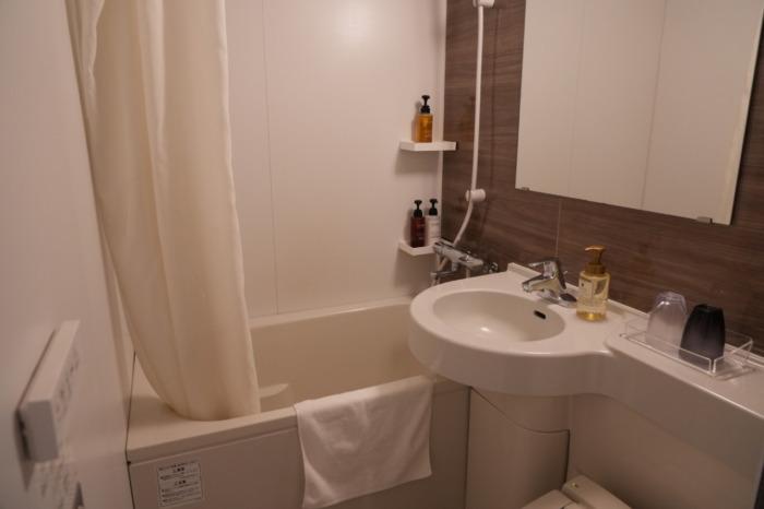 水回りは3点ユニットとなっています。小さめのユニットバスが使われているのでのんびりお湯に使ってという想定だと厳しいかもしれません。建物が新しいうえに清掃も行き届いているので、広さの面でやや窮屈に感じること以外は特に問題ありません。