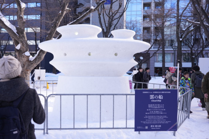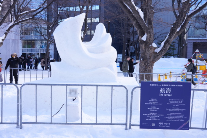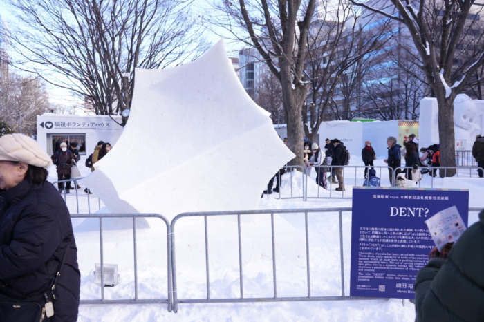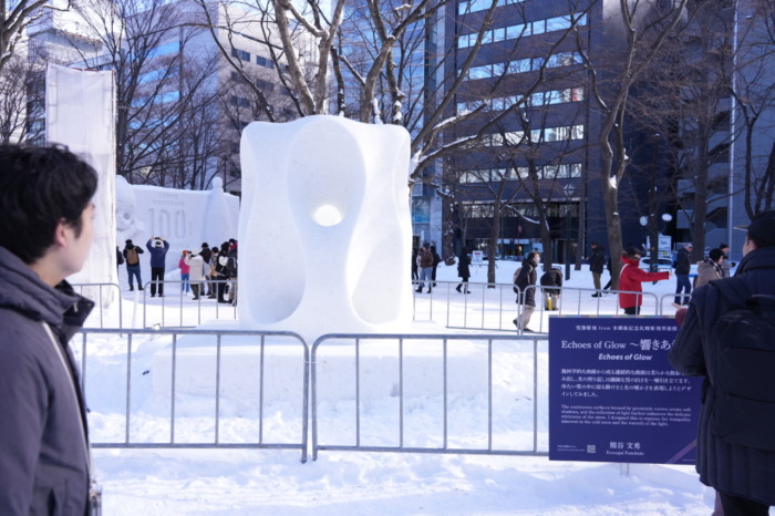 毎年恒例となりつつ彫刻家の雪像です。雪像と言っても彫刻家の作る雪像は雪像とは思えないような不思議な形状をしていて興味深いです。