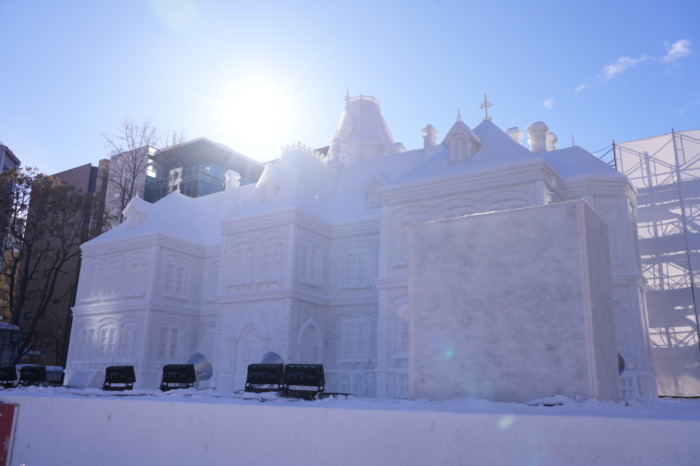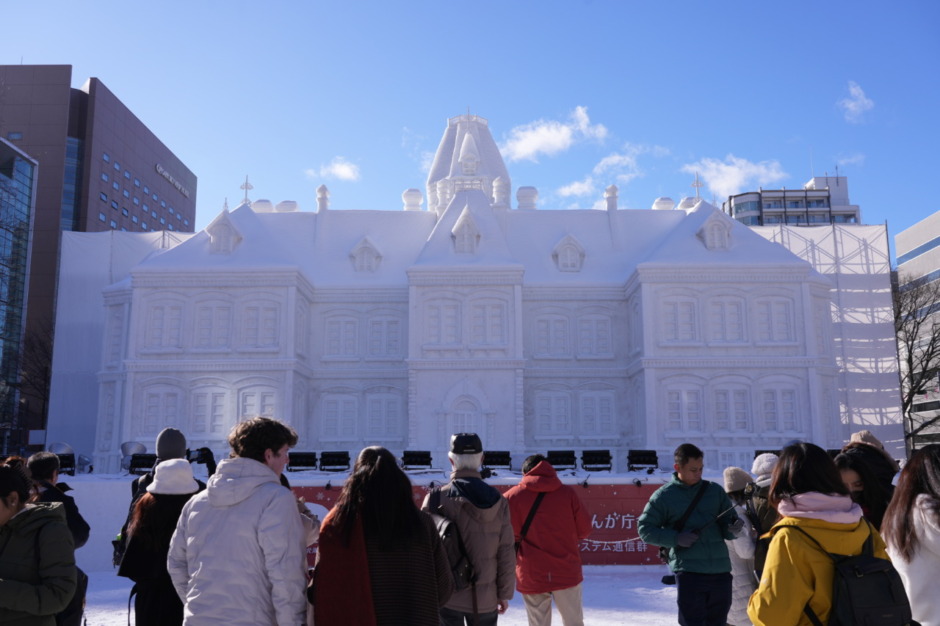 2025年7月頃まで修復工事中だった赤レンガ庁舎の雪像がありました。新たな観光名所として内部もきれいに修繕して有料施設としてリニューアルオープンする予定となっています。
