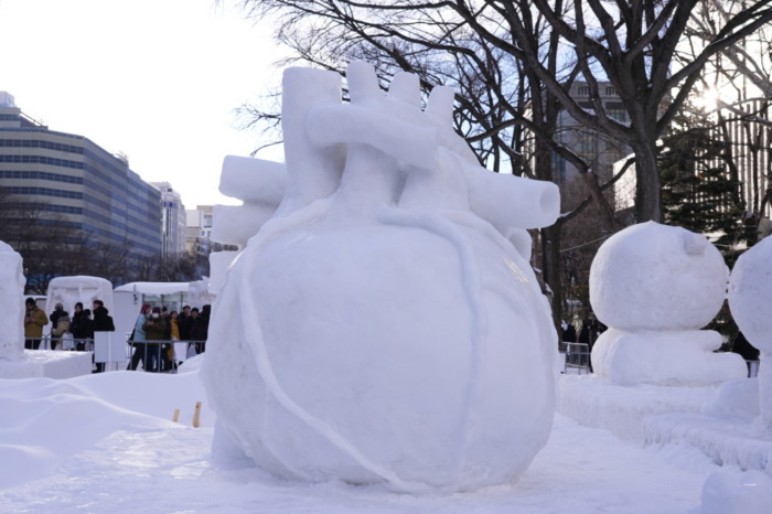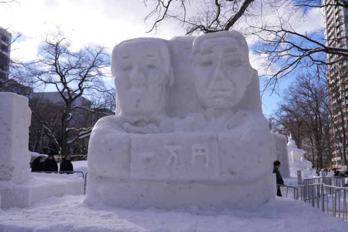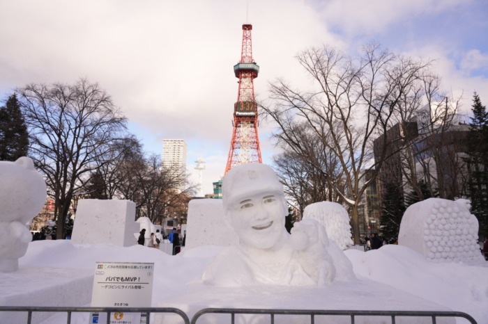 大谷翔平選手の雪像も数多くありました。メジャーリーグへ移籍するまでは北海道日本ハムファイターズに所属していたこともあり、北海道では特に人気のある選手となっているようです。