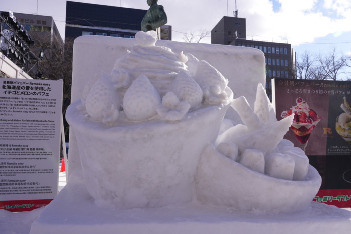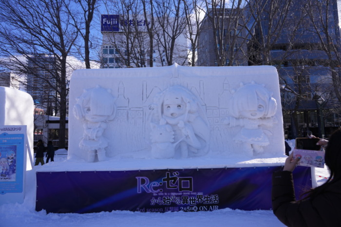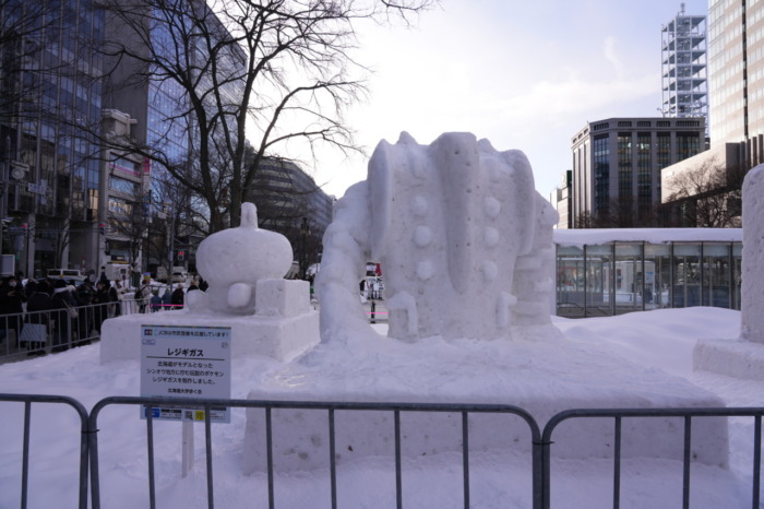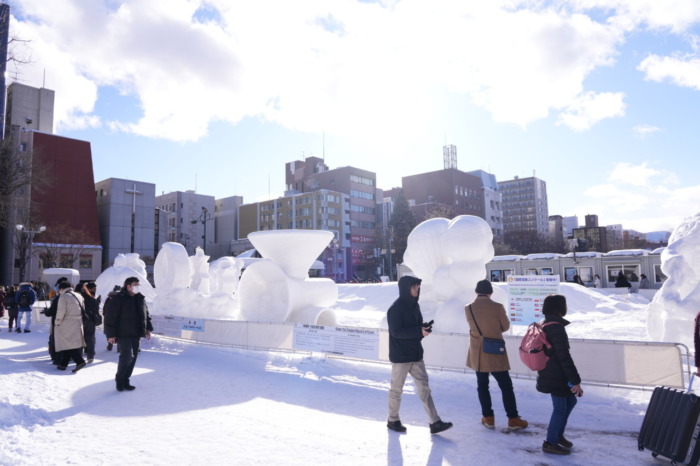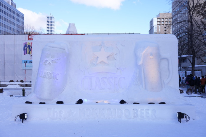 札幌といえばサッポロビールと言わんばかりにサッポロクラッシックの雪像がありました。他の雪像と違ってライトで色表現ありの雪像となっていました。夜にはもっと映えそうです。