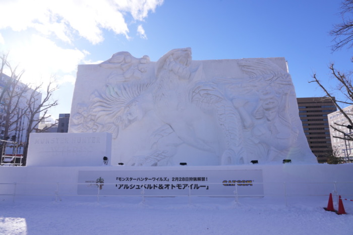モンスタハンターシリーズ最新作『モンスターハンターワイルズ』の雪像です。