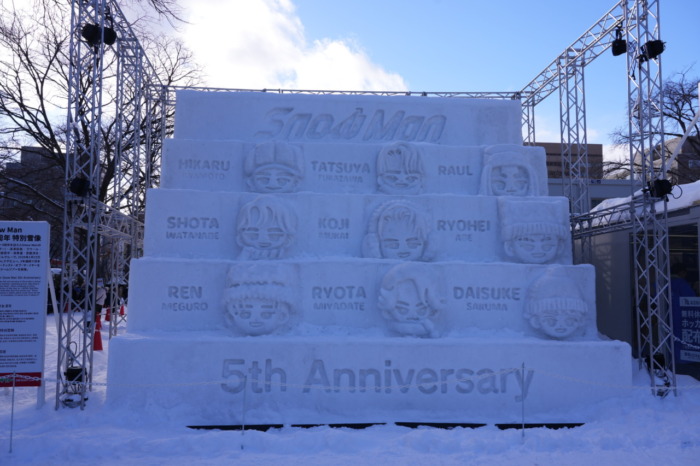雪だけに『Snow Man』ということなのでしょうか。アニメキャラは雪ミクを始めとしてよくあったのですが、アイドル系の雪像は珍しいように思います。
