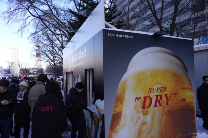『アサヒスーパードライ』のサンプリングが行われていました。北海道はサッポロビールがダントツに人気があるので、サンプルを配布してまず飲んでもらうという真っ向からの勝負に出ているようです。