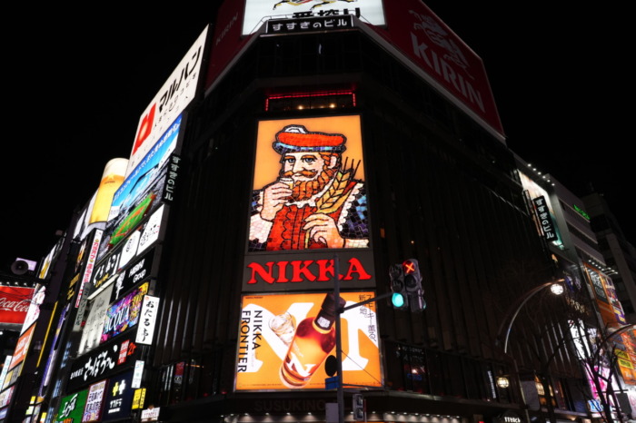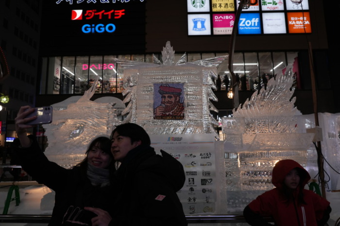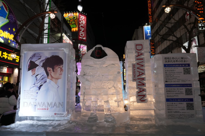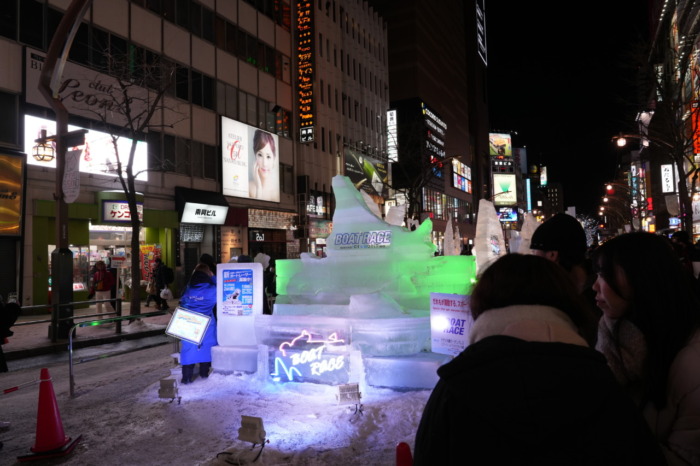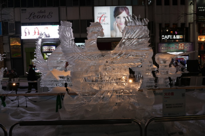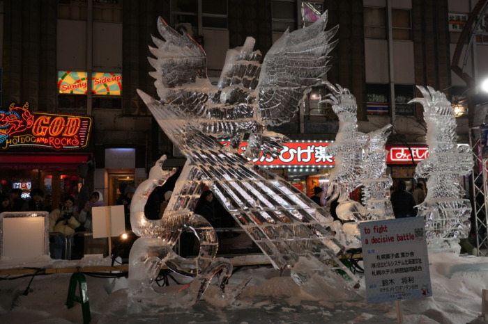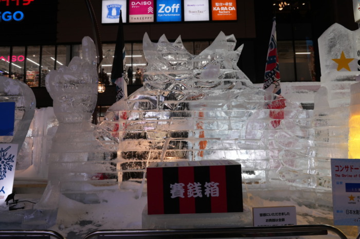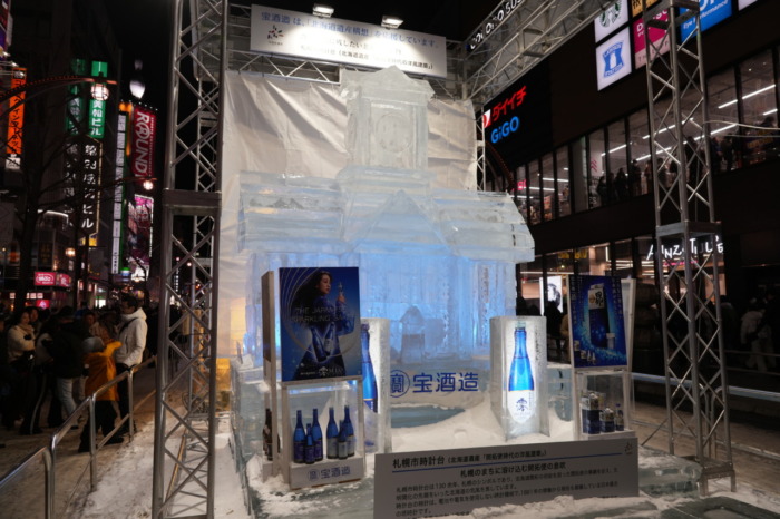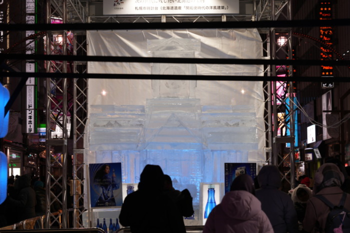 すすきの交差点には大きなニッカおじさんの顔が掲示されていますが、氷像にもニッカウイスキーのものがありました。