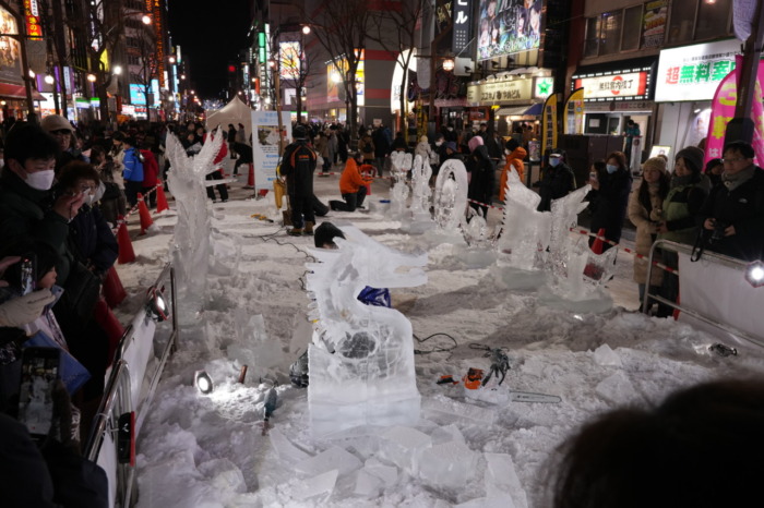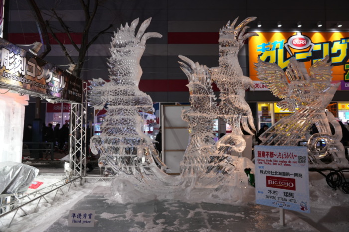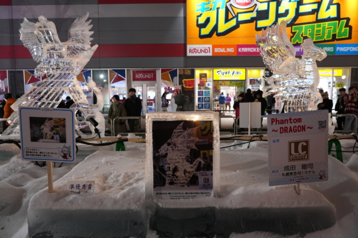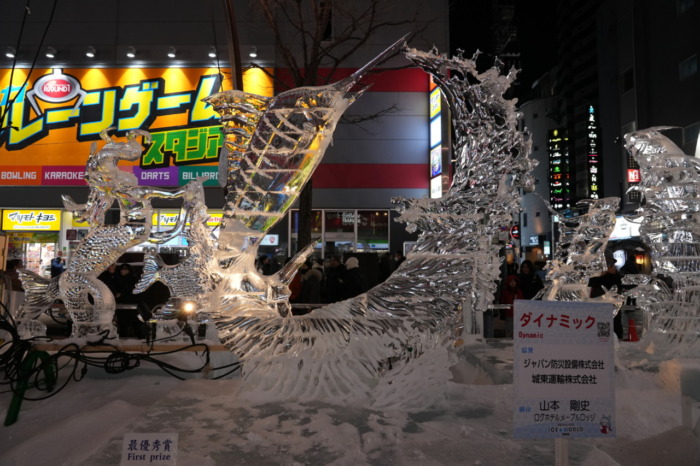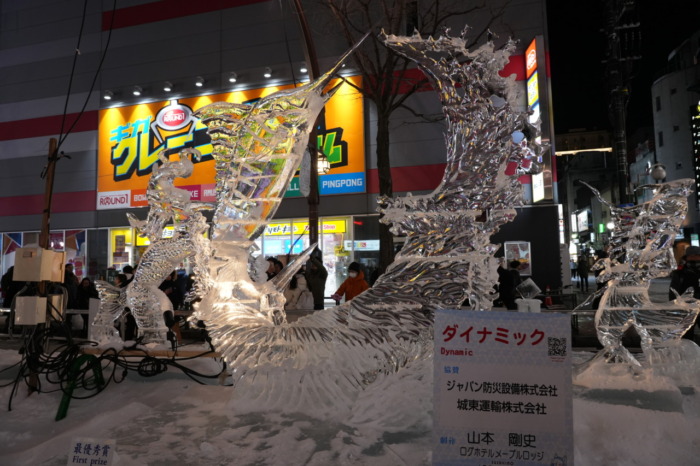氷像コンテストの氷像はどれも細かく精巧に作られているので、どの作品も同じサイズの氷塊から削り出されて作られたということを忘れてしまいそうです。最優秀賞や優秀賞などのプライズもありますが、どの作品も甲乙つけがたい素晴らしいできとなっていることは間違いありません。
