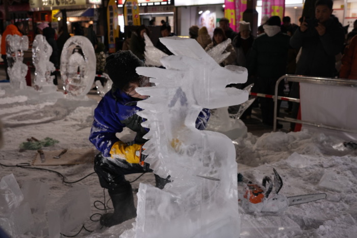 氷像の作り方についてライブ展示がありました。以前に訪れた時はタイミングが悪くてライブ展示を見る機会はなかったのですが、今年は見ることができました。