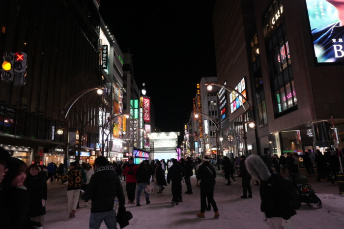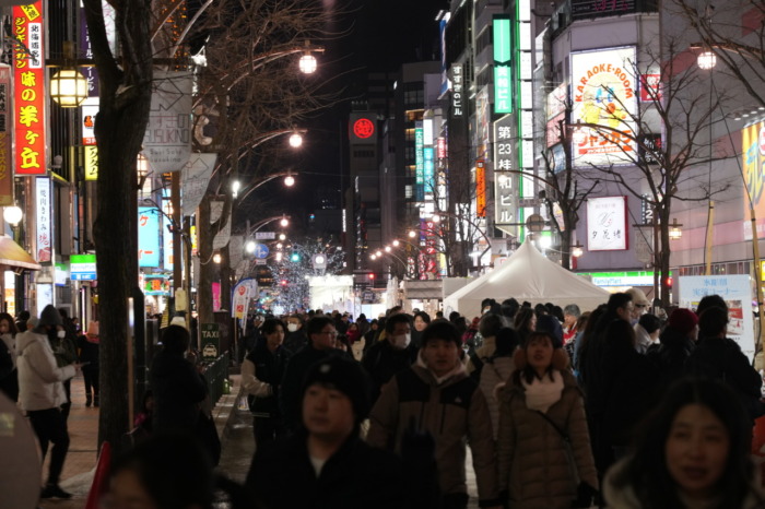 すすきのの交差点もとにかく多くの観光客が行き来していてとても賑やかになっていました。